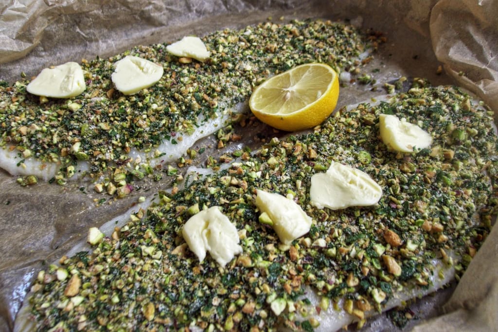 HALIBUT Z PISTACJAMI
