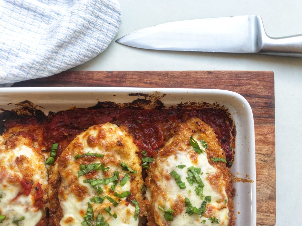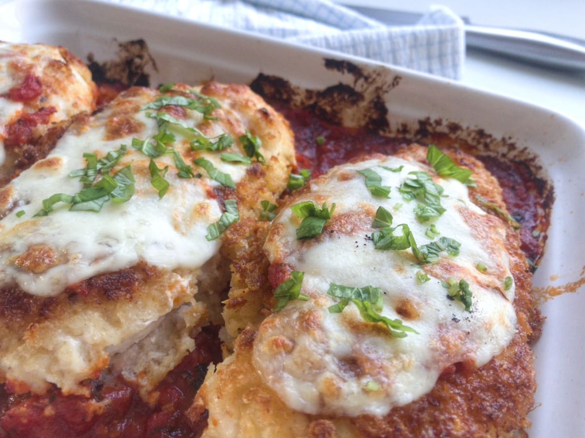 Ile amerykańskich gospodyń tyle przepisów. W niektórych nie ma parmezanu, w innych – mozarelli. Oba te sery można też zastąpić wędzonym serem provolone. Ile serów – tyle kombinacji smaków. Wersja z parmezanem moim zdaniem jest jednak najlepsza. Ser wymieszany z bułką tartą lub panko na delikatnych filetach tworzy chrupką, gęstą i aromatyczna pierzynkę i sprawia, że mięso pozostaje soczyste.