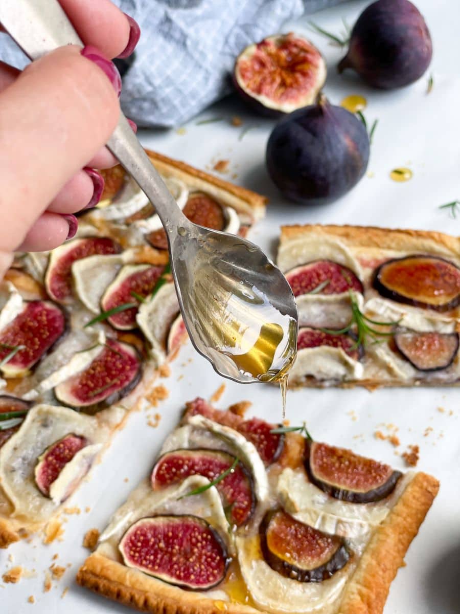 Słowo kluczowe: ciasto francuskie, figi, kozi ser, miód, tarta